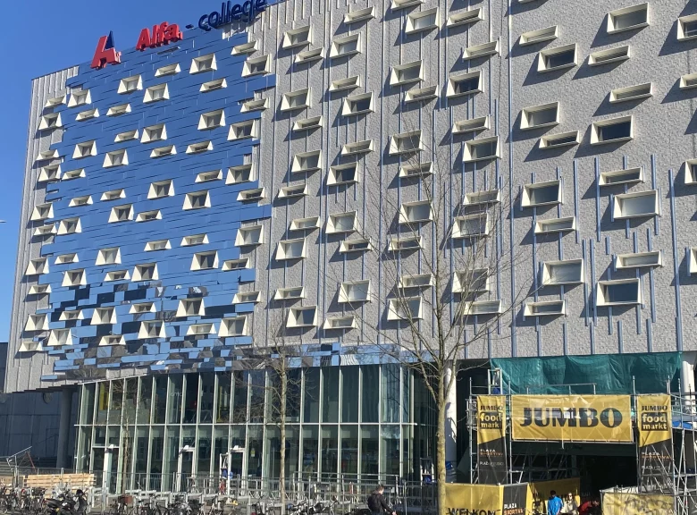 Het Alfa college krijgt nu een nieuwe wonderschone gevel. Het gebouw verandert als een blad aan een boom. Tegen de resterende tegels komen panelen glimmend blik. Ze worden geklikt op verticale profielen. De profielen worden op de gevel vastgeschroefd. Hoeveel schroefjes? Roestvrij? En hoe lang zijn de schroefjes? En zijn de profielen dan sterk genoeg om de zware panelen op hun plaats te houden? Ook bij storm? Als er wat mis gaat, wie neemt dan de verantwoordelijkheid voor al deze beslissingen? En staat dat ergens vast? Kijk, het is allemaal niet zo simpel. Als we alles van te voren willen weten, wordt er nooit meer in Groningen gebouwd. Dus mag u voorlopig gerust wél naar Groningen gaan.