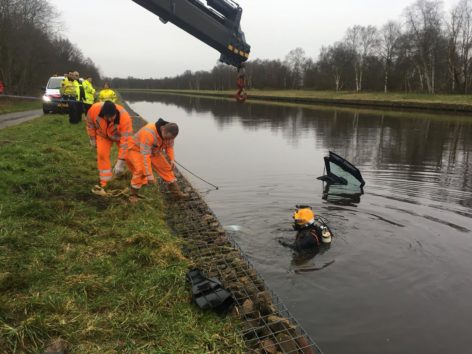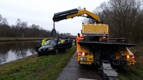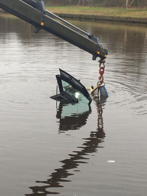 Rond 16.00 uur was de auto ook uit het water getakeld.