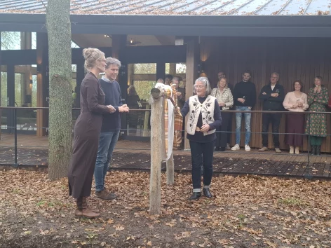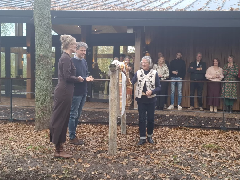 Meer dan 500 bezoekers ontdekken de Heemstee, het nieuwe ontvangsthuis in het hart van de natuurbegraafplaats. Mede-oprichtster Annetje Braat opende zondag officieel de Heemstee, het nieuwe ontvangsthuis in het hart van de natuurbegraafplaats, door het bord met de naam te onthullen.