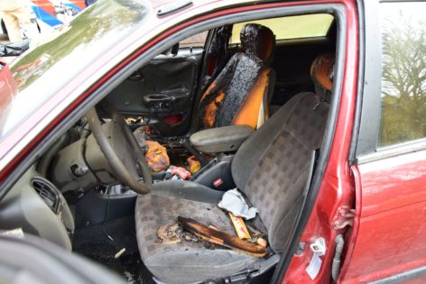 De brandweer is uitgerukt en heeft de brand geblust, de auto raakte beschadigd. De oorzaak van de brand is niet duidelijk.