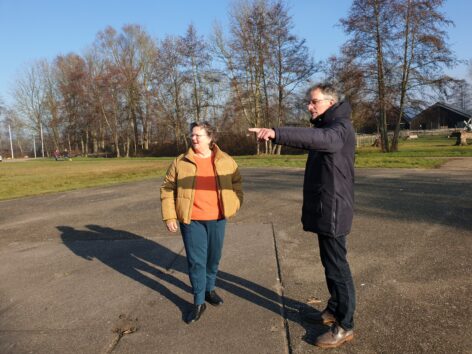 Hillegonda de Vries en Remco Langenberg bekijken de plek waar het gaat gebeuren.
