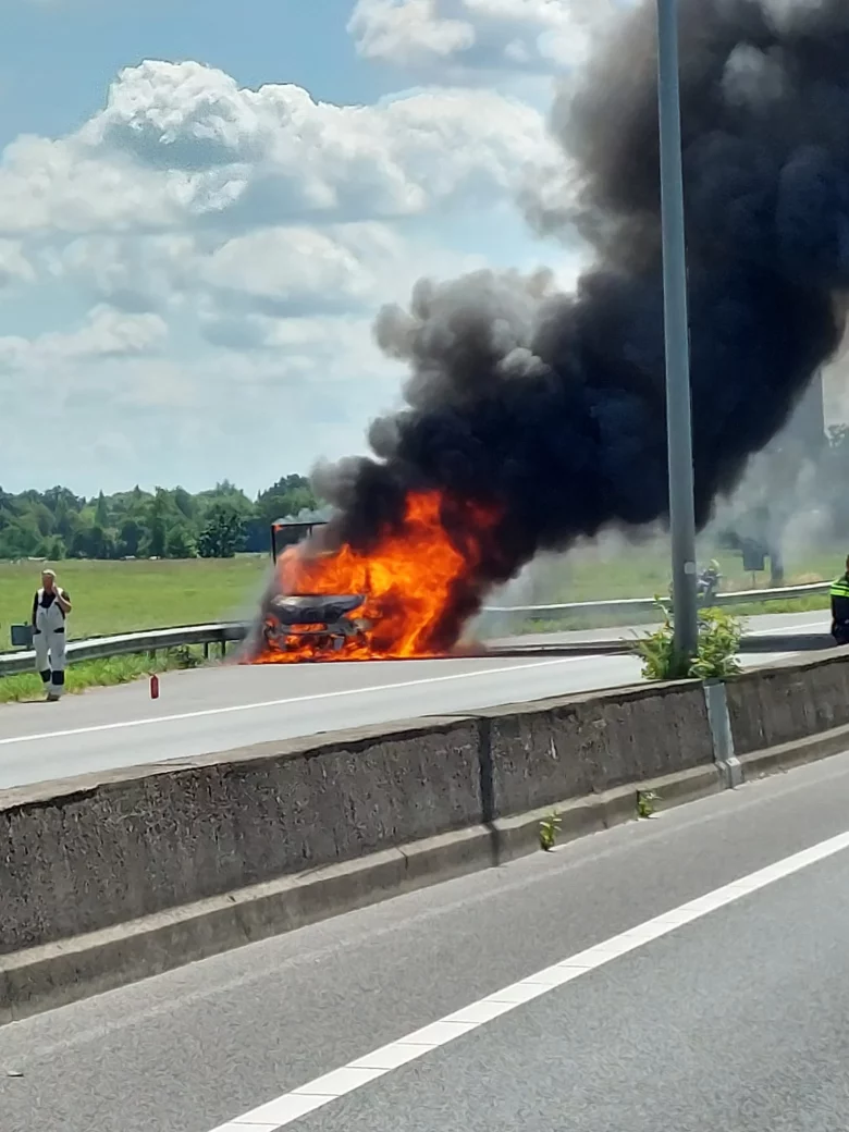 De brandweer van Eelde is opgeroepen en de politie heeft de snelweg voor even moeten afsluiten voor het blussen.