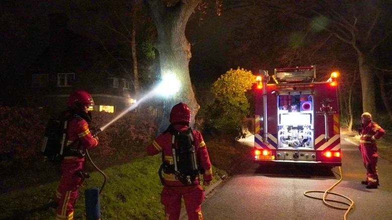 Er was brand in een holle boom, vermoedelijk door vuurwerk.