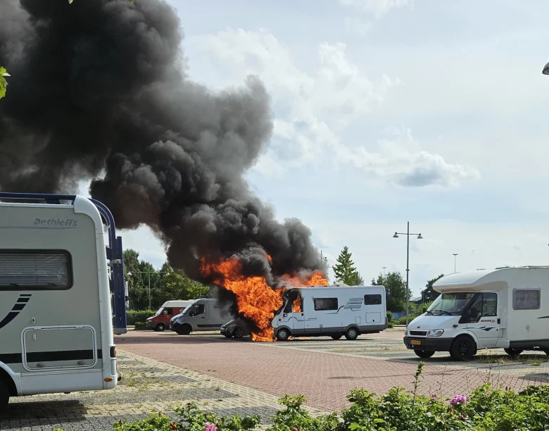 Brandweer en politie zijn ter plaatse. Er klonken twee explosies. De camper is uitgebrand. De twee auto’s die er vlakbij stonden geparkeerd zijn zwaar beschadigd of total loss geraakt door het vuur. Oorzaak is nog niet bekend.