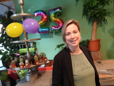 Als iemand al 25 jaar in dezelfde Harense winkel werkt is dat een symbolische mijlpaal. Na zoveel jaren word je een vertrouwd gezicht en dat is voor winkels heel belangrijk. Caroline Otten (45) liep in de zomer van 1998 met eigener Gerard Bolhuis van Bloemenmozaïek door de Brinkhorst, die in aanbouw was. Ze zag voor het eerst de winkel, waar ze nu haar zilveren jubileum viert.