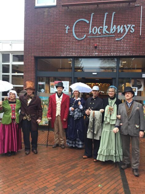 De kerstmarkt in het centrum van Haren op 17 en 18 december wordt opgeluisterd door leden van de Dickens Sociëteit, die de Dickensroom in Haren beheren.