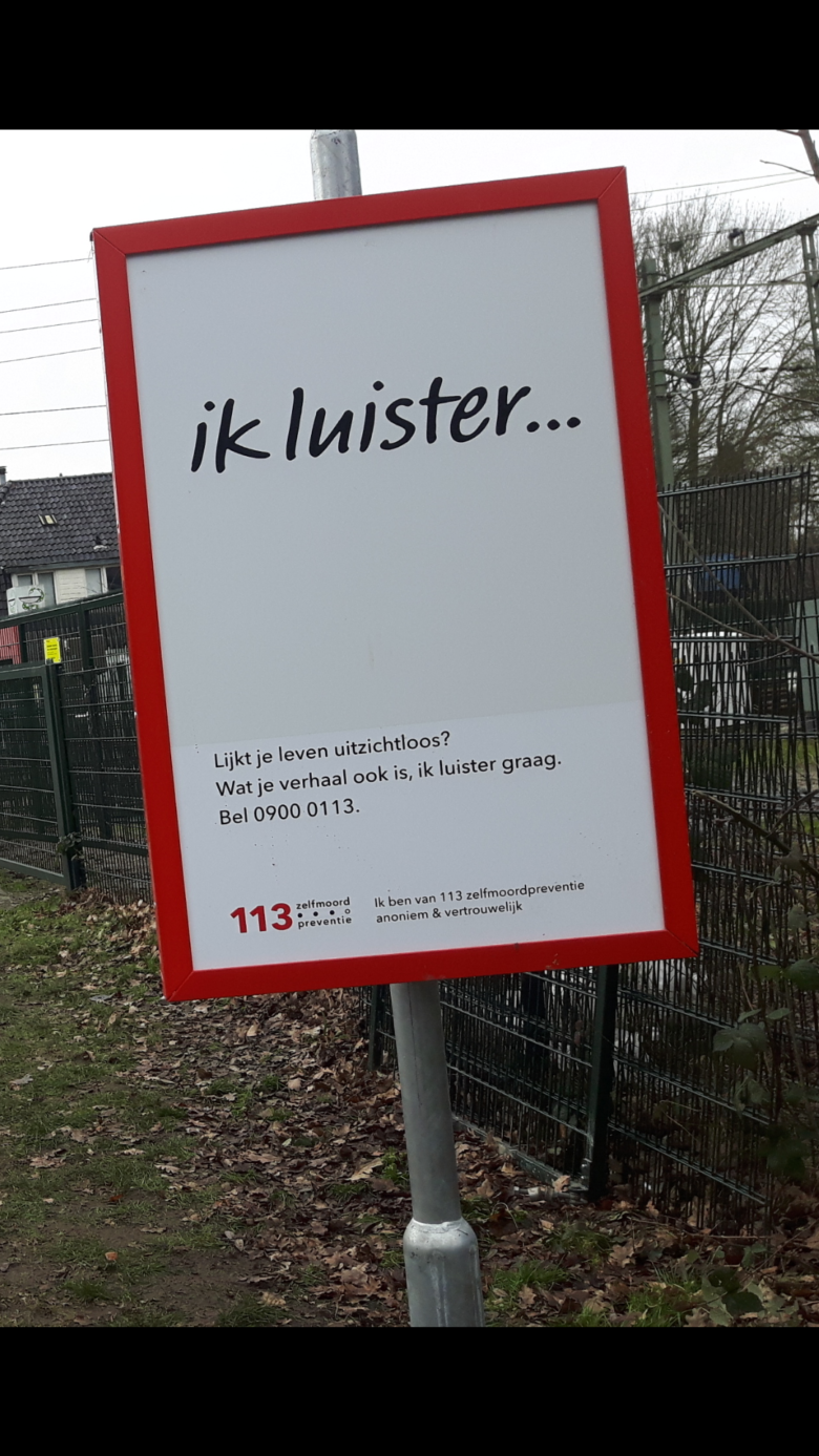 Zelfdoding roept emoties op bij alle betrokkenen. Met een (te) grote regelmaat wordt ook Haren opgeschrikt door gevallen van zelfdoding. Op de openbare weg, maar ook in de beslotenheid van thuis. Op een paar plaatsen in Haren waar depressieve mensen hun toevlucht wel eens zoeken zijn borden geplaatst, die mensen in nood van zelfdoding moeten weerhouden: “Ik luister”. Het telefoonnummer 0900-0113 en de website www.113.nl willen een luisterend oor bieden, zonder oordeel. Dat kan levens redden.