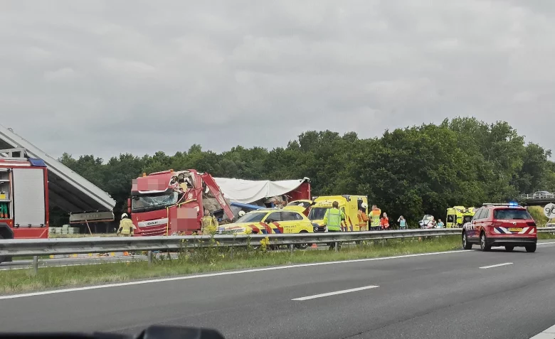 Een vrachtwagen heeft het viaduct geraakt en de oorzaak daarvan is nog niet duidelijk. Rond 12.00 uur was de weg afgesloten in de richting van Assen, zo meldt RTV Drenthe. De hulpdiensten zijn aanwezig en Rijkswaterstaat verwacht dat het verkeer tot de avondspits gehinderd zal zijn. De bestuurder van de vrachtwagen zat vast en moest door de hulpdiensten uit zijn cabine worden gehaald en is afgevoerd naar het ziekenhuis.