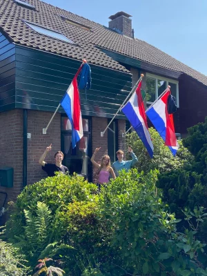 Door heel Haren en omgeving worden de vlaggen weer gehesen. Met schooltas natuurlijk en dat levert ons weer dat typische ‘juni-gevoel’ op. Eén huis aan de Emmalaan in Haren zagen we echter bijna bezwijken onder de last van drie vlaggen. Hoe dat?