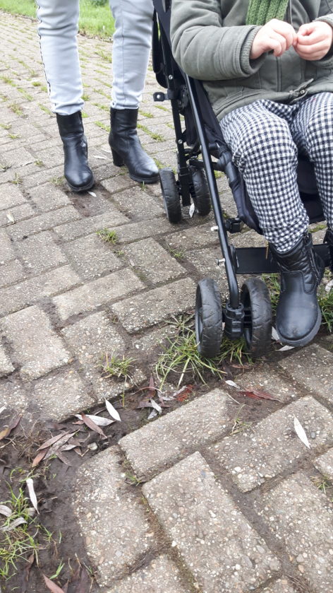 Het pad is voorzien van klinkers en loopt ‘bol’. Op sommige plekken, vooral door mollengangen, is het pad erg verzakt en dat levert ‘greppels’ op waarvan rollators, kinderwagens en rolstoelen hinder ondervinden. Maar dat is nog niet alles: de bruggetjes sluiten niet goed aan op de voetpaden, zodat er een soort ‘drempel’ moet worden genomen. En ten slotte worden de planken van de bruggetjes bij nat weer glad.