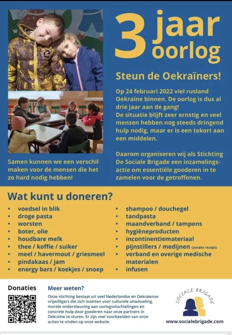 Inzamelactie zaterdag 15 februari voor Oekraïne in Haren