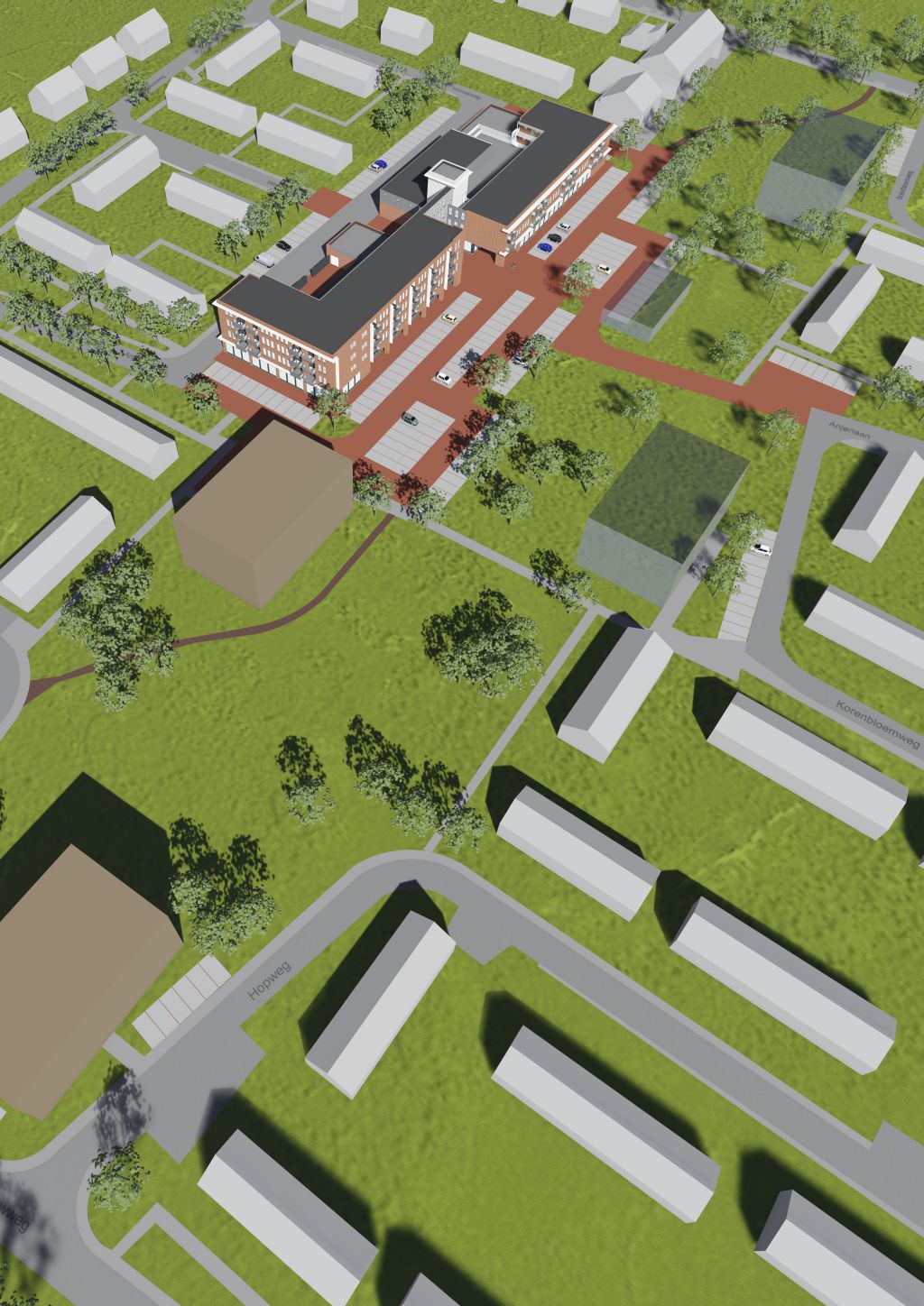 Globaal zal het winkelcentrum bestaan uit twee gedeelten. Op de plaats waar de Windeweg begint komt blok 1, waar zich zullen vestigen: Bloem & Kunst, een nieuwe kapsalon, Restoria, LineStyle en groentenwinkel Berends. Er is dan nog één unit die waarschijnlijk door de fietsenwinkel gehuurd gaat worden. In het tweede blok komt een Jumbo van 1400 m2 met Bakkerij Haafs. Boven die winkels komen appartementen. Op de plaats waar nu groentewinkel Berends staat komen twee woontorens en op termijn komt er een derde woontoren op de plaats waar nu sportcentrum BodyFit zit.