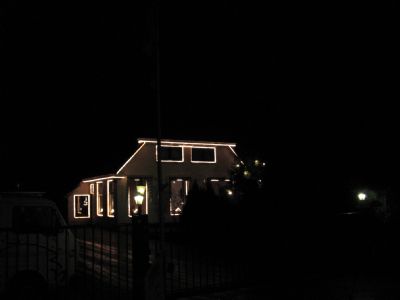 In de donkere dagen voor kerst zijn veel huizen en tuinen versierd met sfeervolle kerstlichtjes. Soms wordt onze webfotograaf overmand door bewondering en trapt op de rem. Dan maakt hij een foto.Zoals deze woning van de familie J. Bloem aan het Westerveen in Harenermolen. Ieder kozijn is verlicht. Het lijkt een sprookjeshuis.
