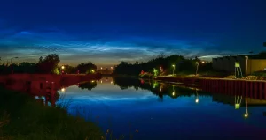 Het fenomeen heet ‘lichtende nachtwolken’ en ze zijn soms in deze tijd van het jaar te zien. Afgelopen late avond na zonsondergang ging Harenaar Ton Wester met zijn fotocamera op pad en maakte net na middernacht nabij de Meerwegbrug in Haren dit wonderschone plaatje.