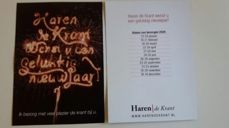 Onze bezorgers in Haren geven u dan een handige kerstkaart met daarop de verschijningsdata van 2020. Om fraude te vermijden treft u hierbij de kaart aan. Heeft de bezorger deze kaart niet bij zich, dan is het wellicht geen bezorger van Haren de Krant.