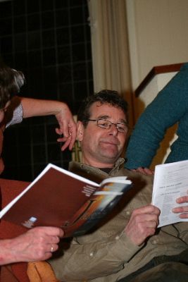 De foto is gemaakt tijdens de repetities in Het Trefpunt te Glimmen. Wij herkennen in deze zanger toch duidelijk Jan van der Woude, in het dagelijks leven bekend van het gelijknamige verhuisbedrijf!