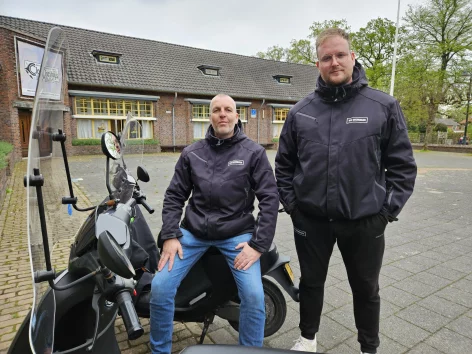 Straatcoach Marcel Salakory en jongerenwerker Wibrand Brontsema van WIJ Haren op tour in Haren.