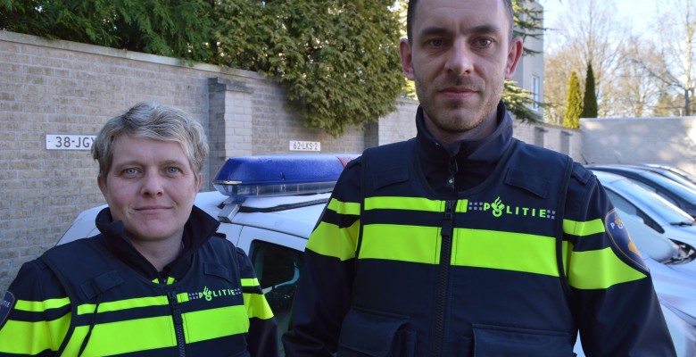 Op de foto de buurtagenten Willemijn Savenije en Willem Andriessen…