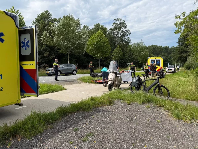 Bij Waterhuizen zijn dinsdag rond 12.15 uur twee scooters op elkaar gebotst. De hulpdiensten rukten uit.