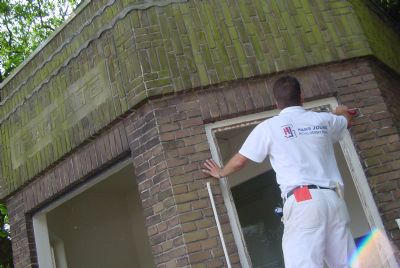 Schoppende voeten, slaande vuisten en als het kan op de ruiten van bushokjes. In Haren ging de afgelopen maanden weer veel glaswerk aan diggelen. De schilders van Hans Joling hebben het er druk mee.Wij troffen woensdag 17 mei rond half 1 het bijgaande tafereel aan. Twee ruiten van het oude tramhuisje bij de Holsteinslaan waren ingeslagen. Maar het is de daders niet gelukt de boel letterlijk aan scherven te krijgen. “Dit is gelaagd glas”, zegt de glaszetter. “Er zit aan beide kanten folie, dat houdt de boel bij elkaar.” Het voordeel hiervan is dat het fietspad niet vol splinters ligt.