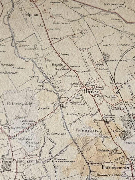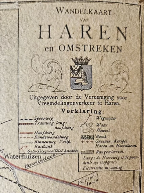 De originele kaart is in het bezit van Haren de Krant, die deze destijds kreeg van iemand die in de jaren 40 in het gemeentehuis van Haren werkzaam was. De gemeentelijke koffievlek op de kaart is ook op de poster prima te herkennen. De kaart hing destijds in het gemeentehuis op de hoek van de Meerweg en de Rijksstraatweg.