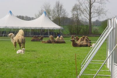…maar er wel graag had willen zijn. Onze webfotograaf stopte zijn wagen aan de Rijksstraatweg ter hoogte van Stadion Esserberg.Aan de overzijde heeft Circus Belly uit Wenen de tent opgeslagen. Het is een mooi gezicht, woonwagens, kooien en hokken, spelende circuskinderen en….dieren! Je staat oog in oog met giraffen en met kamelen. Zo te zien zijn er diverse jongen geboren op Harense gronden. De bijgaande foto werd dinsdag 2 mei rond 13.00 uur gemaakt.