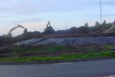 …en er graag had willen zijn. Voor het weer hoeft u niet naar Haren te komen deze dagen. Eindeloos veel regen. Waar is de bijgaande foto gemaakt, denkt u?Onze webfotograaf reed naar de Emmalaan, het viaduct van de A28 snelweg. Langs de afrit (komende vanuit de richting Assen) is het talud kaalgeschoren. Helemaal kaal. Nu wordt er hard gewerkt aan een geluidsscherm, dat Haren moet beschermen tegen het monotone lawaai van de snelweg. De foto is gemaakt op 22 augustus om 8.30 uur.