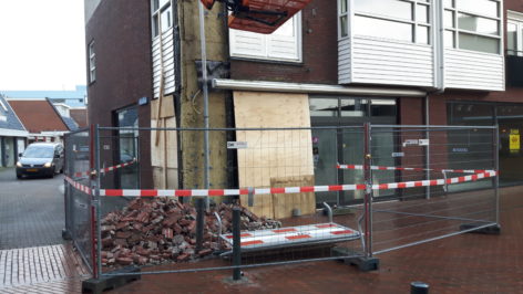 Het zware voertuig rolde vervolgens tegen de gevel van BloemenMozaiek. Daar werd een flinke schade veroorzaakt. Tot in de vroege avond werd er onderzoek gedaan en werden de eerste maatregelen genomen om de gevel te herstellen. Woensdagochtend was een groot deel van de gevel (stenen waren losgeraakt) verwijderd tot aan de dakgoot. Ramen zijn voorzien van houten platen.
