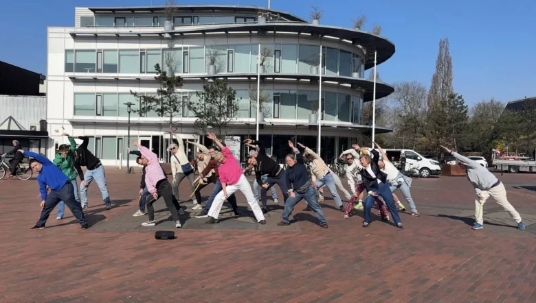 Bewoners van Borgheerd (Kerkstraat) en vrienden, yogacursisten en trainers van The Gym kwamen hiervoor samen op het Raadhuisplein. Er waren een veel verraste toeschouwers die hiervan genoten.
