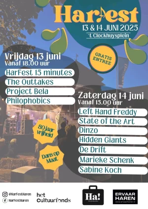 Vrijdag 13 en zaterdag 14 juni lijken zomerse dagen en vooral zomerse avonden te worden in Haren. Fijn voor de organisatie, musici en publiek van HarFest.